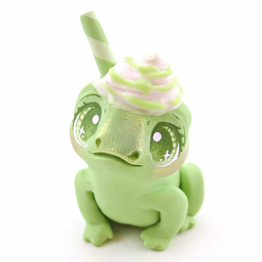 Matcha Frog Figurine - "Breakfast Buddies" Polymer Clay Animal Collection