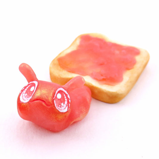 Strawberry Jam Slug on Toast Figurine - "Breakfast Buddies" Polymer Clay Animal Collection