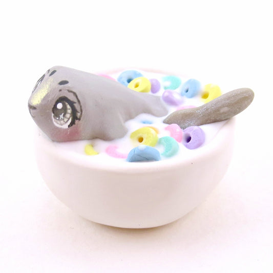Cereal Bowl Seal Figurine - "Breakfast Buddies" Polymer Clay Animal Collection