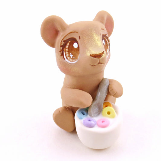 Cereal Bowl Bear Figurine - "Breakfast Buddies" Polymer Clay Animal Collection