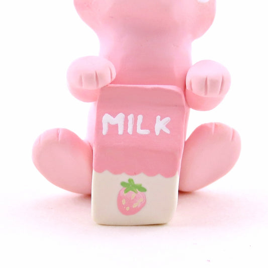 Strawberry Milk Bear Figurine - "Breakfast Buddies" Polymer Clay Animal Collection