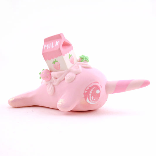 Strawberry Milk Narwhal Figurine - "Breakfast Buddies" Polymer Clay Animal Collection