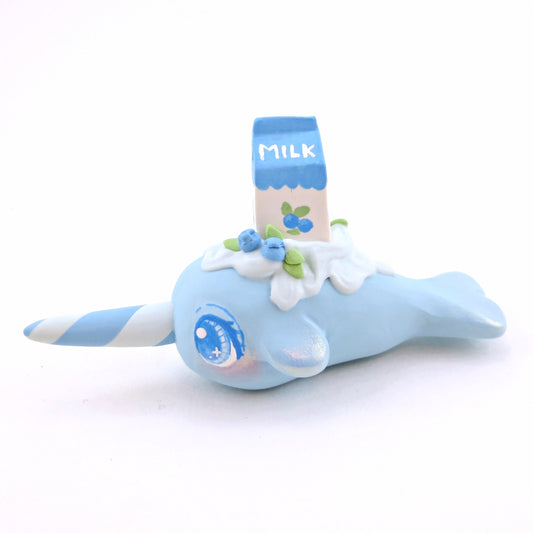 Blueberry Milk Narwhal Figurine - "Breakfast Buddies" Polymer Clay Animal Collection