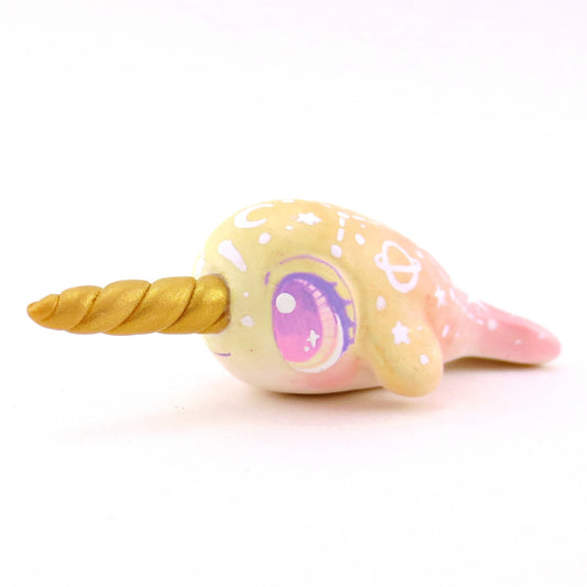 Peachy Ombre Constellation Narwhal Figurine - Polymer Clay Celestial Sea Animals