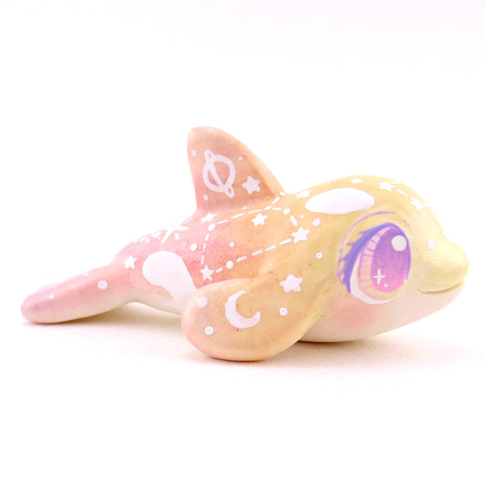Peachy Ombre Constellation Orca Figurine - Polymer Clay Celestial Sea Animals