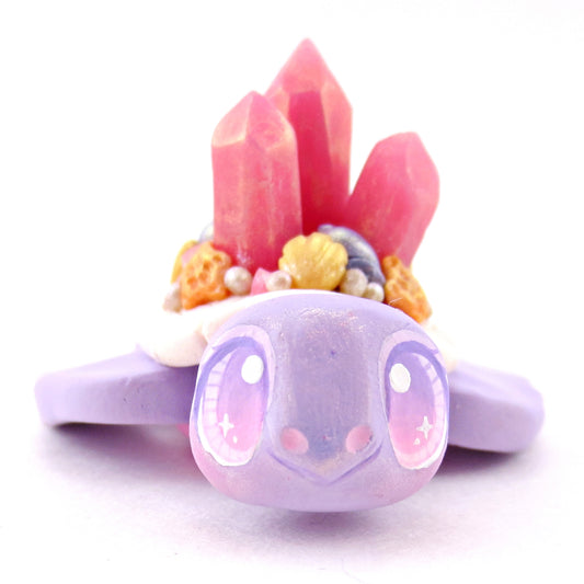 Purple and Pink Crystal Seashell Turtle Figurine - Polymer Clay Celestial Sea Animals