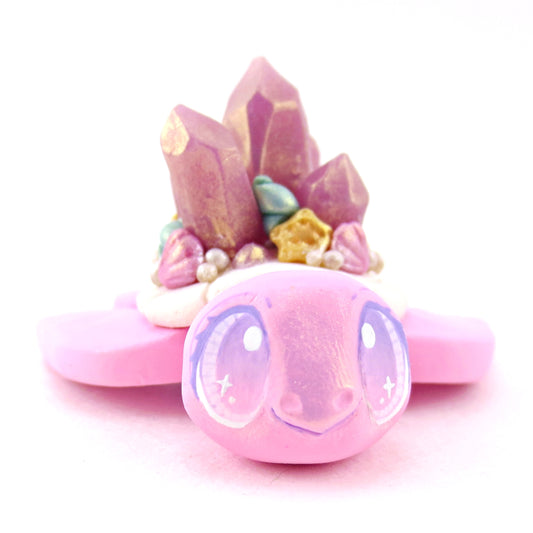 Pink and Purple Crystal Seashell Turtle Figurine - Polymer Clay Celestial Sea Animals