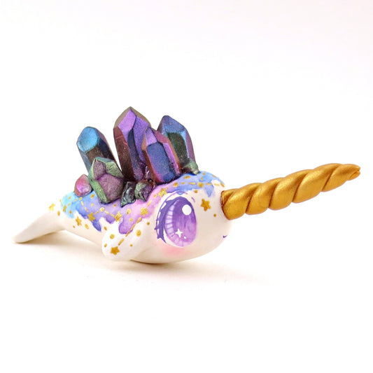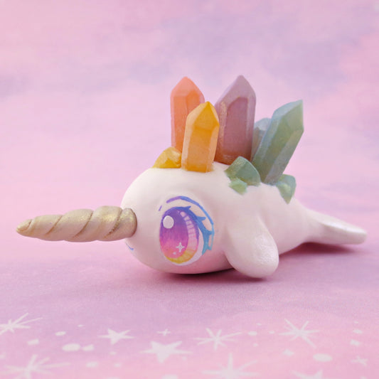 Rainbow Crystal Narwhal Figurine - Polymer Clay Celestial Sea Animals