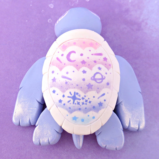 Purple Ombre Cloud Shell Turtle Figurine - Polymer Clay Celestial Sea Animals