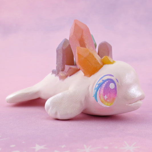 Rainbow Crystal Beluga Figurine - Polymer Clay Celestial Sea Animals