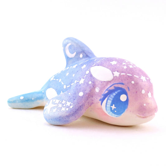 Peachy Ombre Constellation Baby Orca Figurine - Polymer Clay Celestial Sea Animals