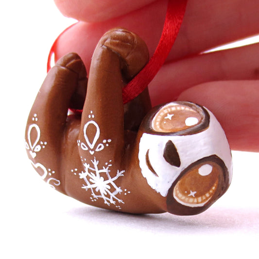 Gingerbread Sloth Ornament - Polymer Clay Christmas Animals