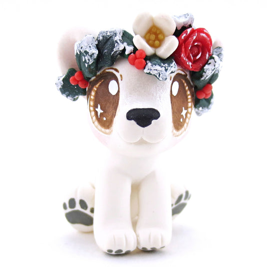 Baby Polar Bear with Winter Flower Crown Figurine - Polymer Clay Christmas Animals