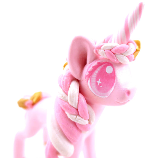 Pink Christmas Gold Holly Unicorn Figurine - Polymer Clay Christmas Animals