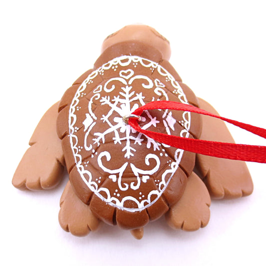 Gingerbread Turtle Ornament - Polymer Clay Christmas Animals