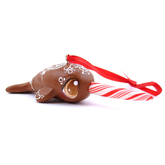 Gingerbread Heart Narwhal Ornament - Polymer Clay Christmas Animals