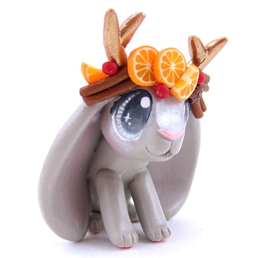 Grey Christmas Cinnamon Cranberry Orange Jackalope Bunny Figurine - Polymer Clay Christmas Animals