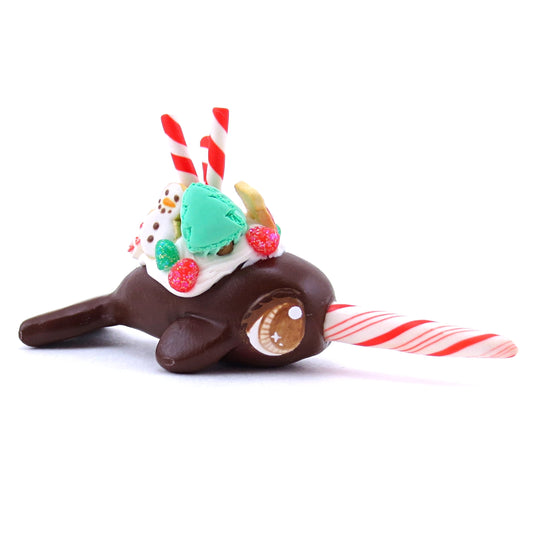 Dark Chocolate Christmas Dessert Narwhal Figurine - Polymer Clay Christmas Animals