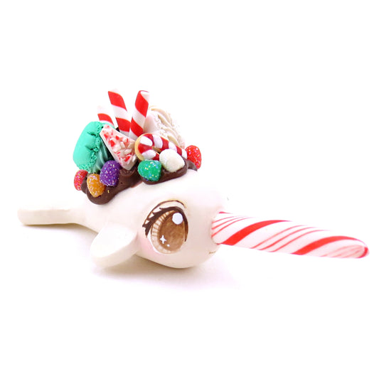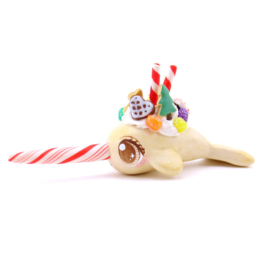 White Chocolate Christmas Dessert Narwhal Figurine - Polymer Clay Christmas Animals