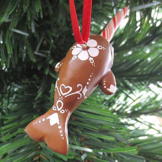 Gingerbread Flower Narwhal Ornament - Polymer Clay Christmas Animals