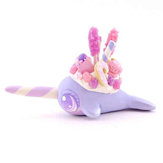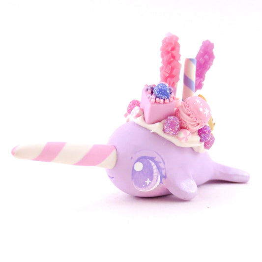 Sugar Plum Purple Dessert Narwhal Figurine - Polymer Clay Christmas Animals