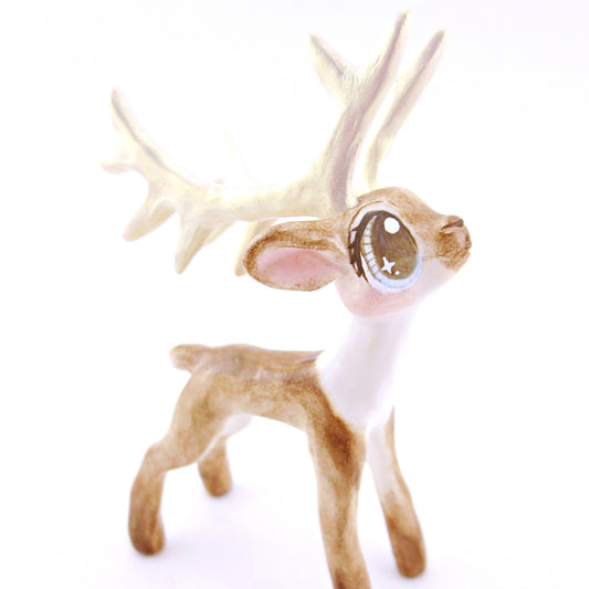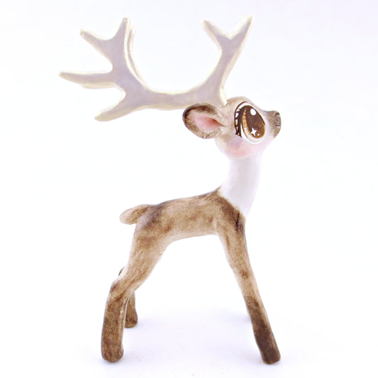 Cupid - Big-Antlered Reindeer Figurine - Polymer Clay Christmas Animals