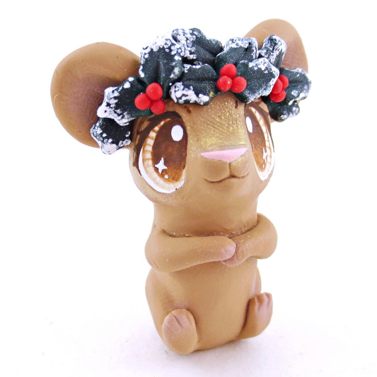 Holly Crown Mouse Figurine - Polymer Clay Christmas Animals