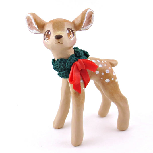 Christmas Wreath Deer Figurine - Polymer Clay Christmas Collection