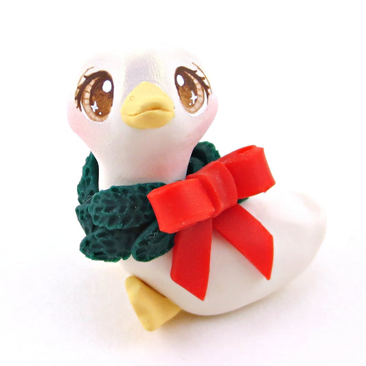 Christmas Wreath Goose Figurine - Polymer Clay Christmas Collection