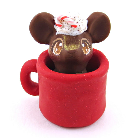 Peppermint Mocha Mouse in a Mug Figurine - Polymer Clay Christmas Collection