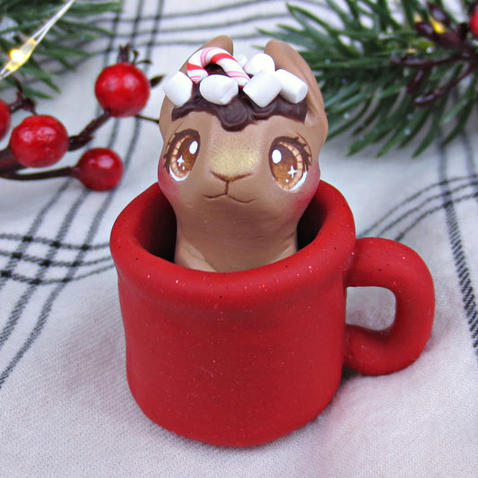 Hot Cocoa Bunny in a Mug Figurine - Polymer Clay Christmas Collection