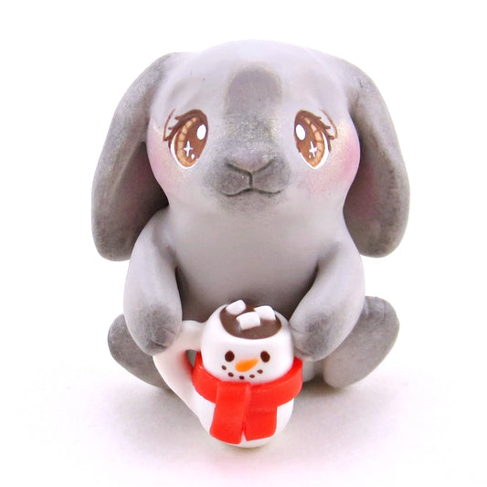 Bunny with a Snowman Hot Cocoa Mug Figurine - Polymer Clay Christmas Collection