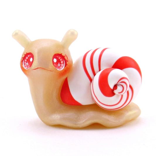 Candy Cane Snail Figurine - Polymer Clay Christmas Collection