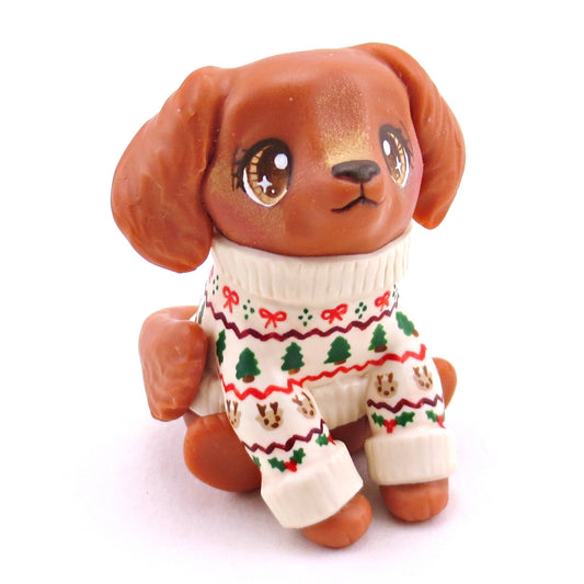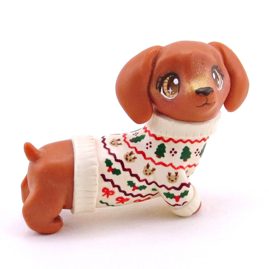 Christmas Sweater Dachshund Puppy Dog Figurine - Polymer Clay Christmas Collection