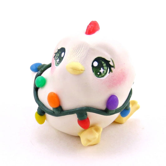 Christmas Lights Chicken Hen Figurine - Polymer Clay Christmas Collection