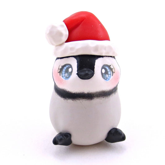 Santa Hat Penguin Figurine - Polymer Clay Christmas Collection