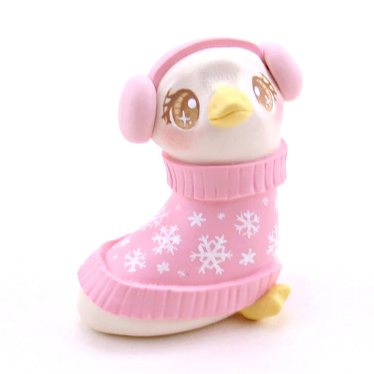 Pink Snowflake Sweater Goose Figurine - Polymer Clay Christmas Collection