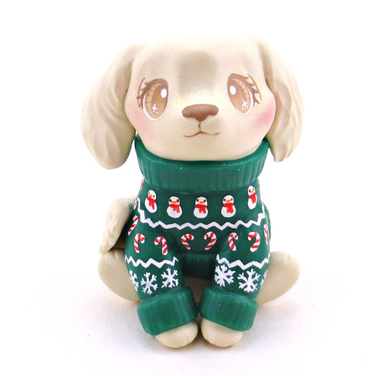 Christmas Sweater Cream Golden Retriever Puppy Dog Figurine - Polymer Clay Christmas Collection