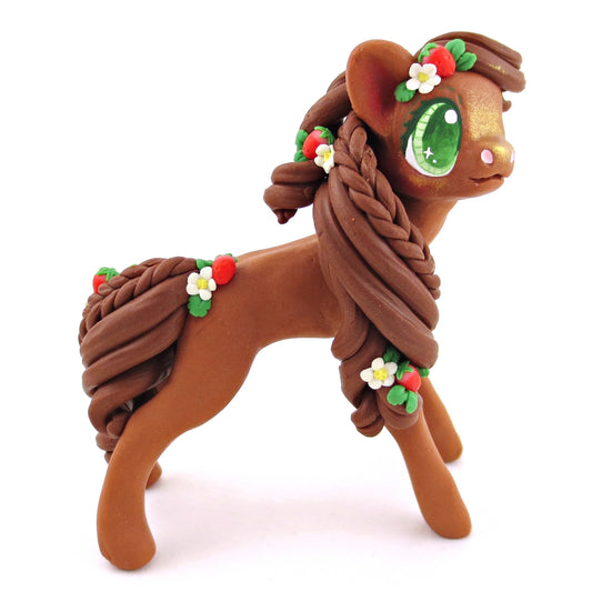 Strawberry Chestnut Pony Figurine - Polymer Clay Cottagecore Animals