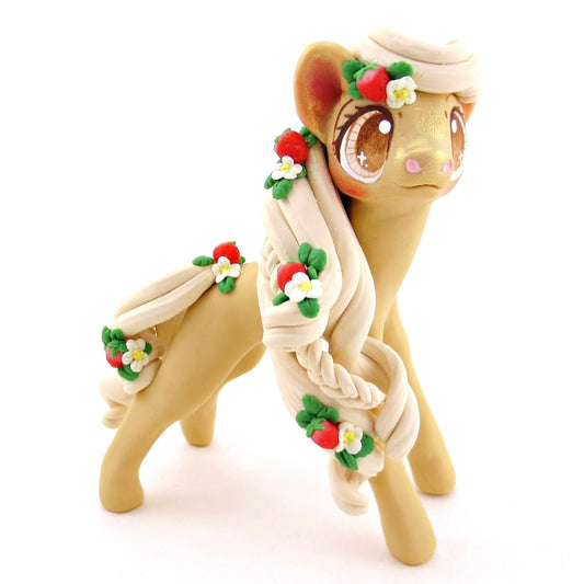 Strawberry Palomino Pony Figurine - Polymer Clay Cottagecore Animals
