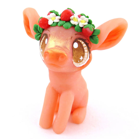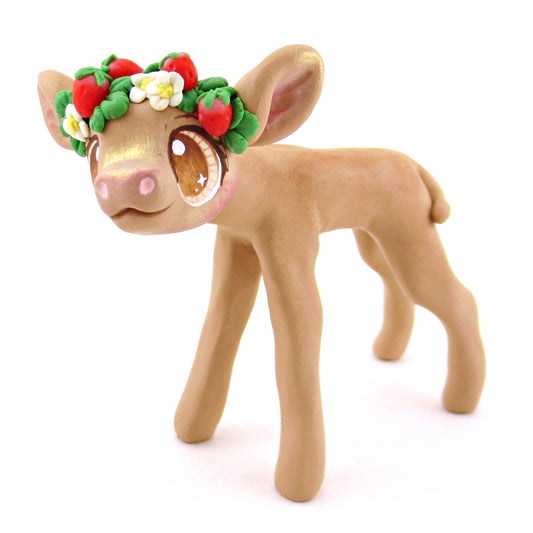 Strawberry Crown Jersey Cow Figurine - Polymer Clay Cottagecore Animals