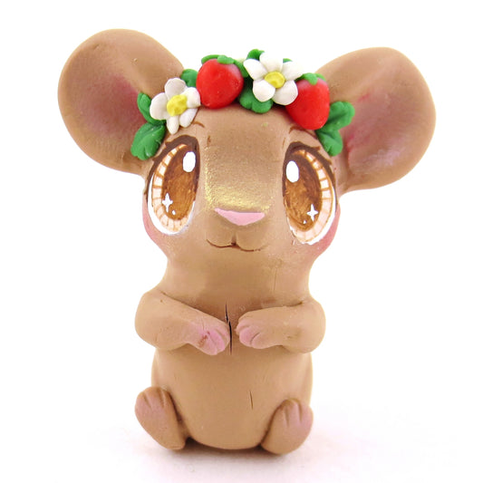 Strawberry Crown Field Mouse Figurine - Polymer Clay Cottagecore Animals