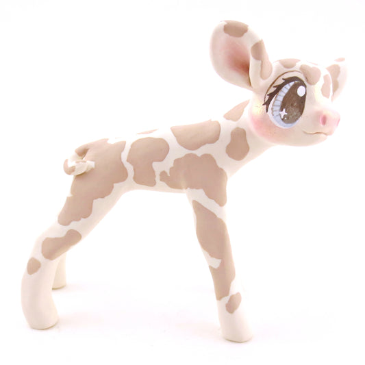 Soft Brown and Cream Holstein Cow Figurine - Polymer Clay Cottagecore Animals