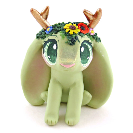 Wildflower Jackalope Bunny Figurine - Polymer Clay Cottagecore Animals