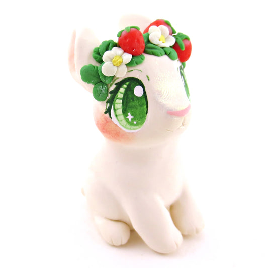Strawberry Crown Cream Netherland Dwarf Rabbit Bunny Figurine - Polymer Clay Cottagecore Animals