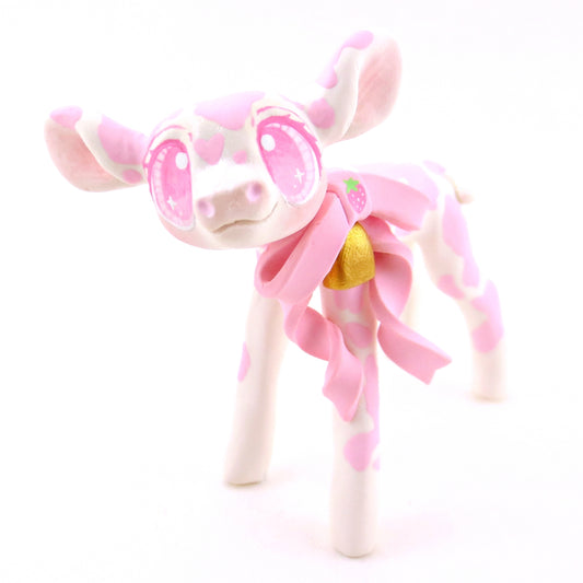 Strawberry Cow Figurine - Version 1 - Polymer Clay Cottagecore Animals