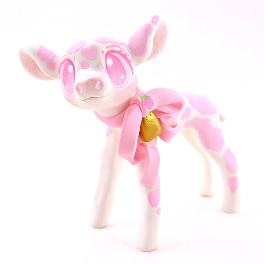 Strawberry Cow Figurine - Version 2 - Polymer Clay Cottagecore Animals
