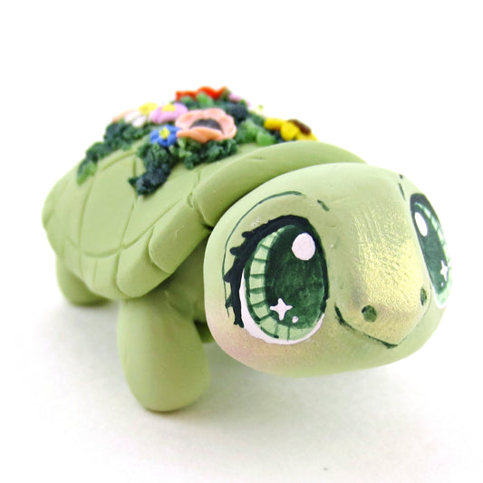 Wildflower Box Turtle Figurine - Polymer Clay Cottagecore Animals