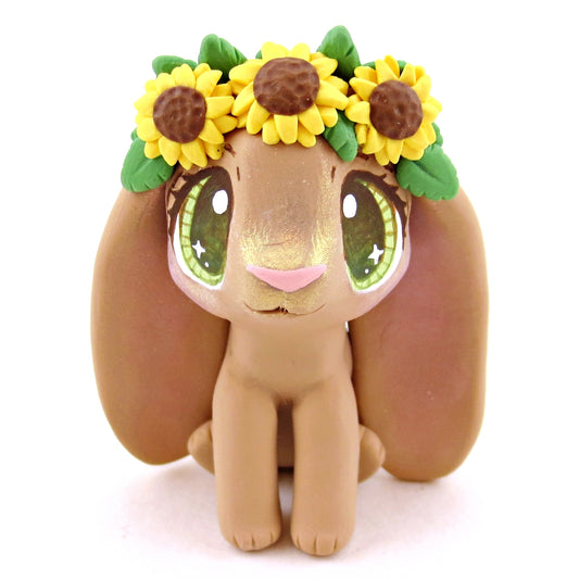 Sunflower Lop Rabbit Figurine - Polymer Clay Cottagecore Fall Animal Collection