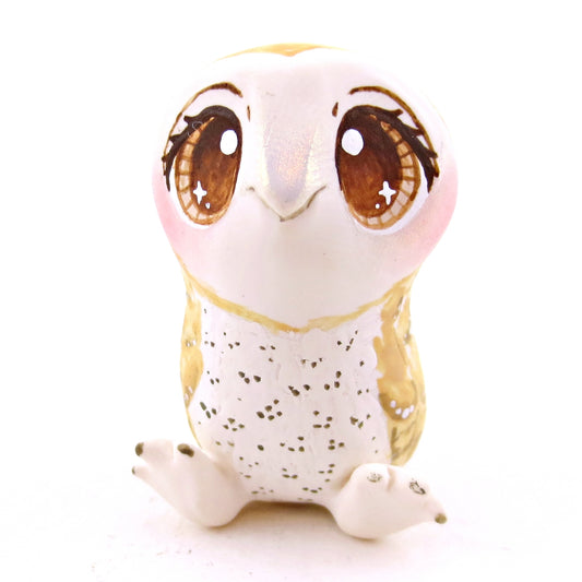 Brown-Eyed Barn Owl Figurine - Polymer Clay Cottagecore Fall Animal Collection